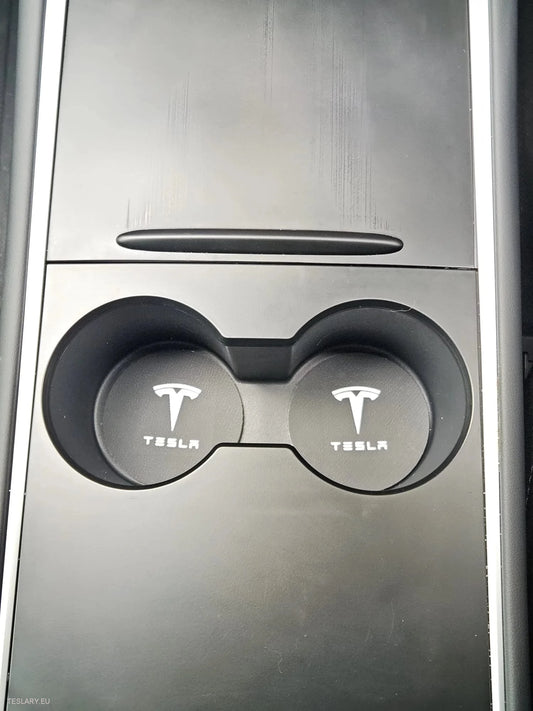 Tesla Model 3 Y S X Black Leather Centre Console Cup Inserts with Logo