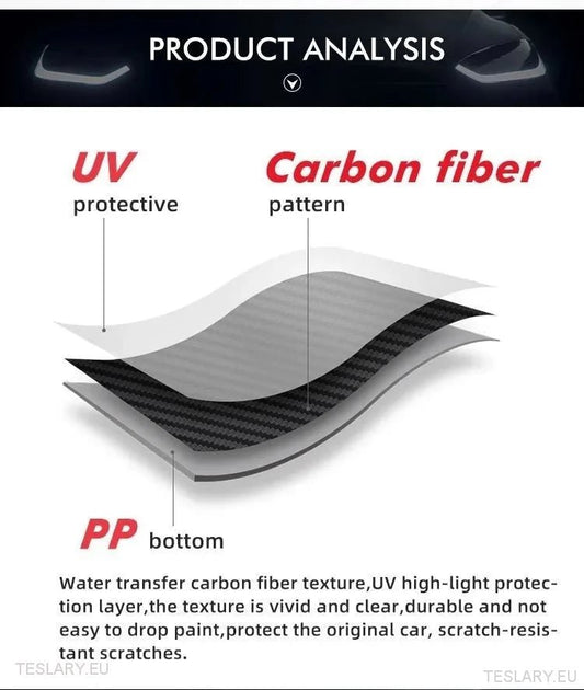 Carbon Fiber Style Accessories for your Tesla Model 3 , Y , S & X Including Dash Covers , Spoilers , Button Covers , Logos and lots from from Europes TESLARY.EU