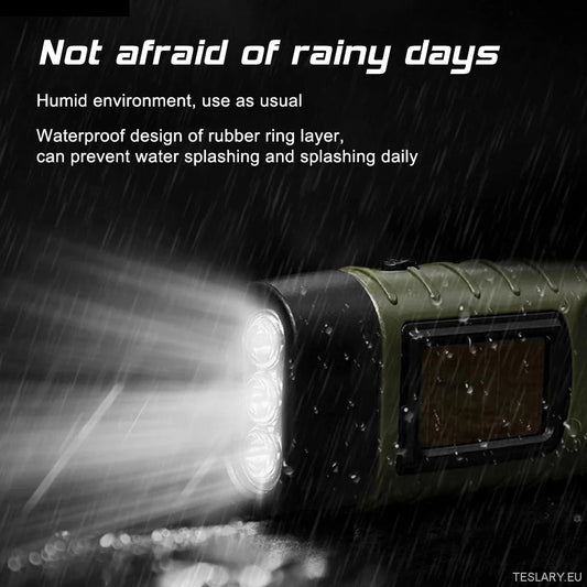 Portable Solar Powered Emergency Flashlight Light Hand Cranked Light LED Torch Rechargeable Lamp