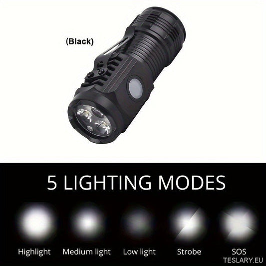 Compact Ultra-Bright Mini LED Flashlight with USB Rechargeable Battery - 5 Adjustable Modes, Portable & Durable, Ideal for Night Travel, Emergency Repairs, Outdoor Adventures - Includes 18650 Series Rechargeable Battery