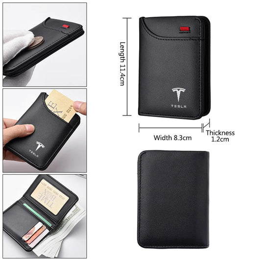 Tesla Luxury Soft Wallet Leather Mini Credit Card Portable Small Wallet For All Tesla Owners