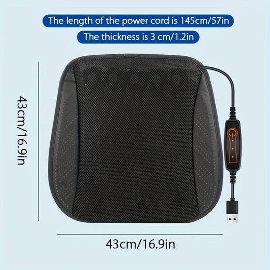 Car Ventilated Seat Cushion with USB Fan - Cooling, Breathable Summer Mat for Car Seats, Black with Blue Accents, Perfect for Tesla Model 3 Y S X