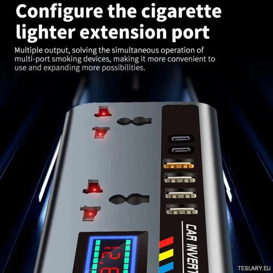 Multiport Car Power Inverter: 12V/24V to 220V with 9 Charging Ports - EV Compatible
