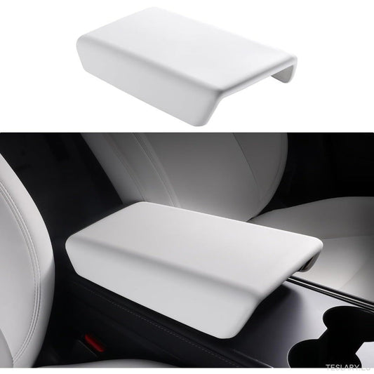 for Tesla Model 3/Y (2019-2024) White Center Console Cover - Non-Slip TPE Armrest Protector Pad, Interior Accessory