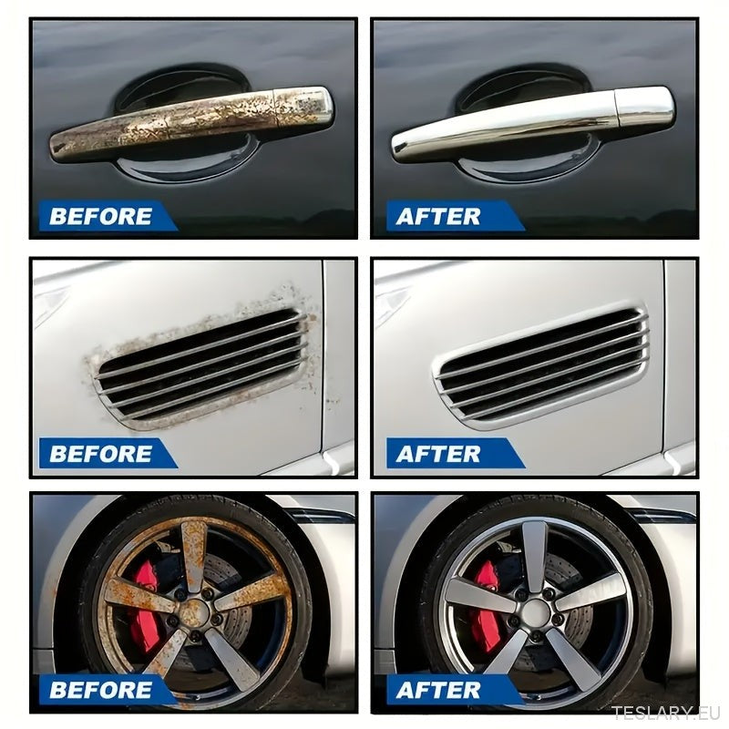 Say goodbye to rusty car parts with our 100ml Car Rust Remover and Protection Spray. Easily restore and polish metal surfaces on door handles, logos, and wheel hubs with this magic potion. No need to spend money on a new car - just spray and watch those flaws disappear, leaving your ride with a fresh, new look.