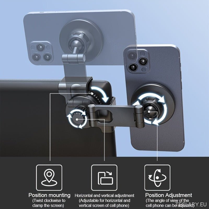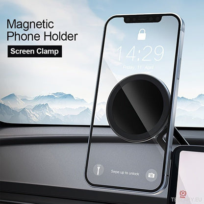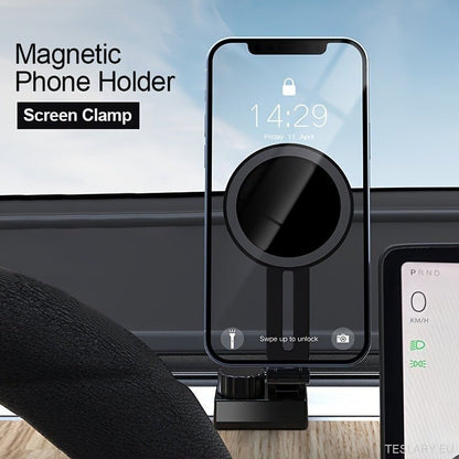 360° Rotatable Magnetic Car Phone Mount, Clamp-On Screen Holder for Tesla Model 3/Y/S/X