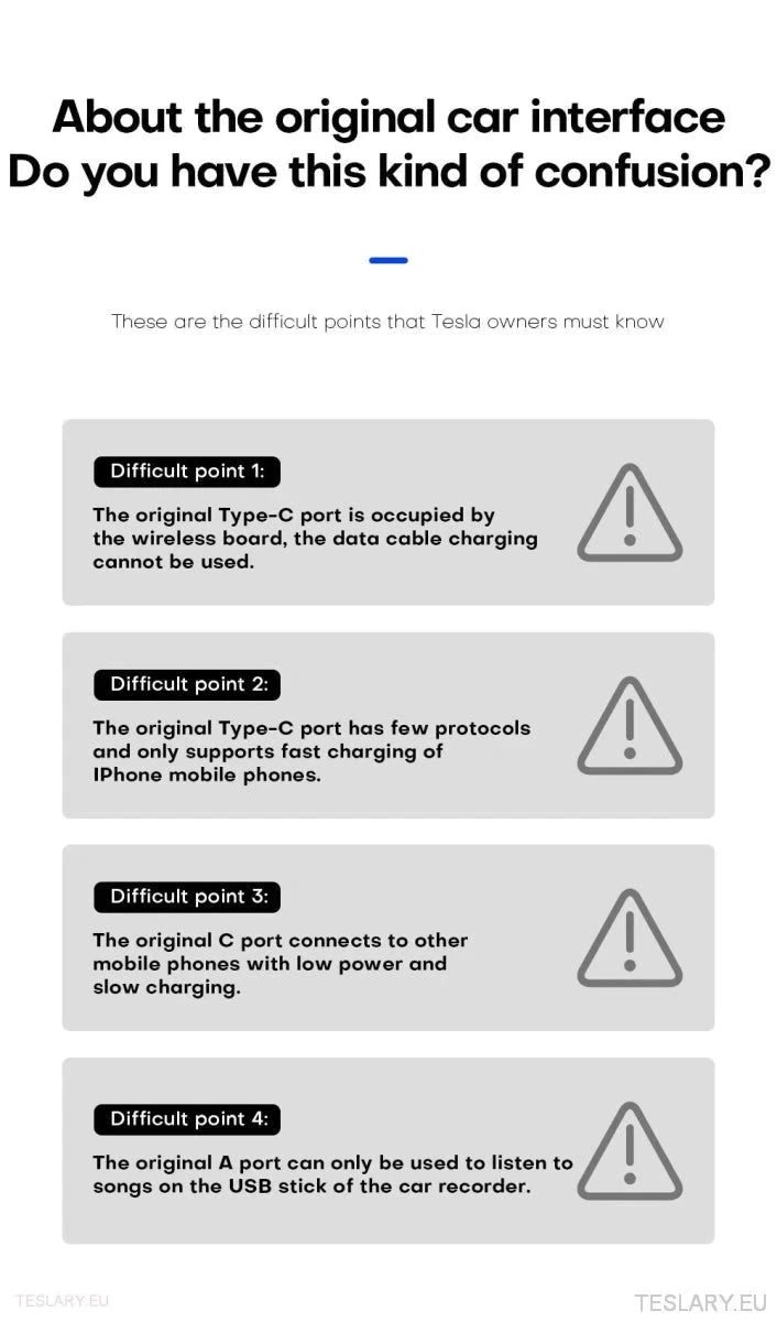 1. The specially designed USB docking station is perfectly compatible with Tesla Model 3 Model Y centre console, without affecting the internal appearance and normal use of the storage box.