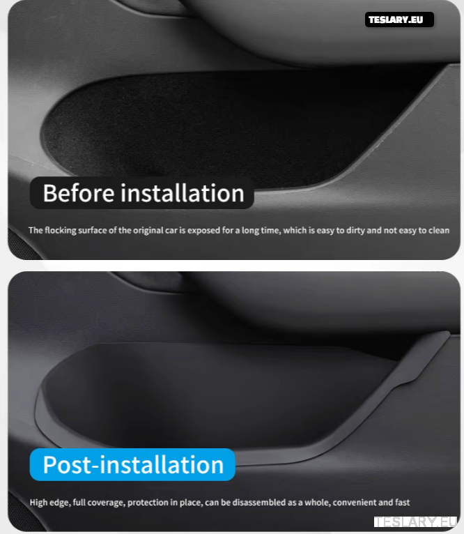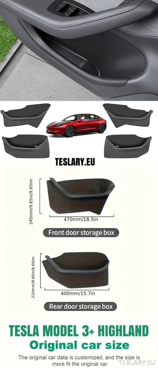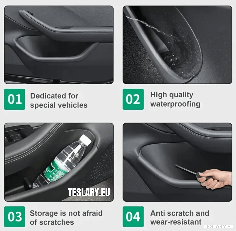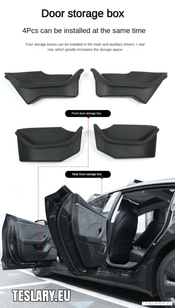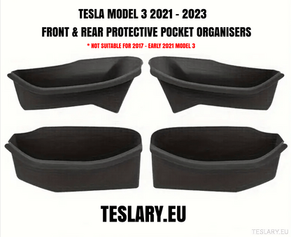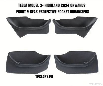 Tesla Model 3 , Y & 3+ Highland Door Side Storage Protective Pocket Organisers, Waterproof Full Coverage Front & Rear Door Trays, 2 or 4-Piece, TPE Plastic Organiser
