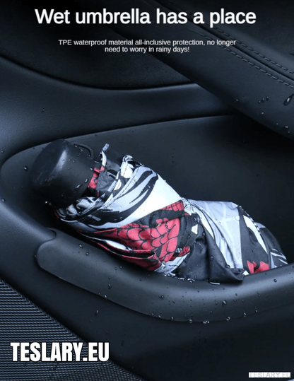 One of the questions we have been asked numerous times is can a wet umbrella be put into the storage pocket and the answer if yes and I have done this myself in my own 2024 Tesla Model Y to test this for a customer and I can confirm I had no issues at all. It was also ideal to store the umbrella however than I had to find a new location for everything that I had been storing in the driver side storage pocket !