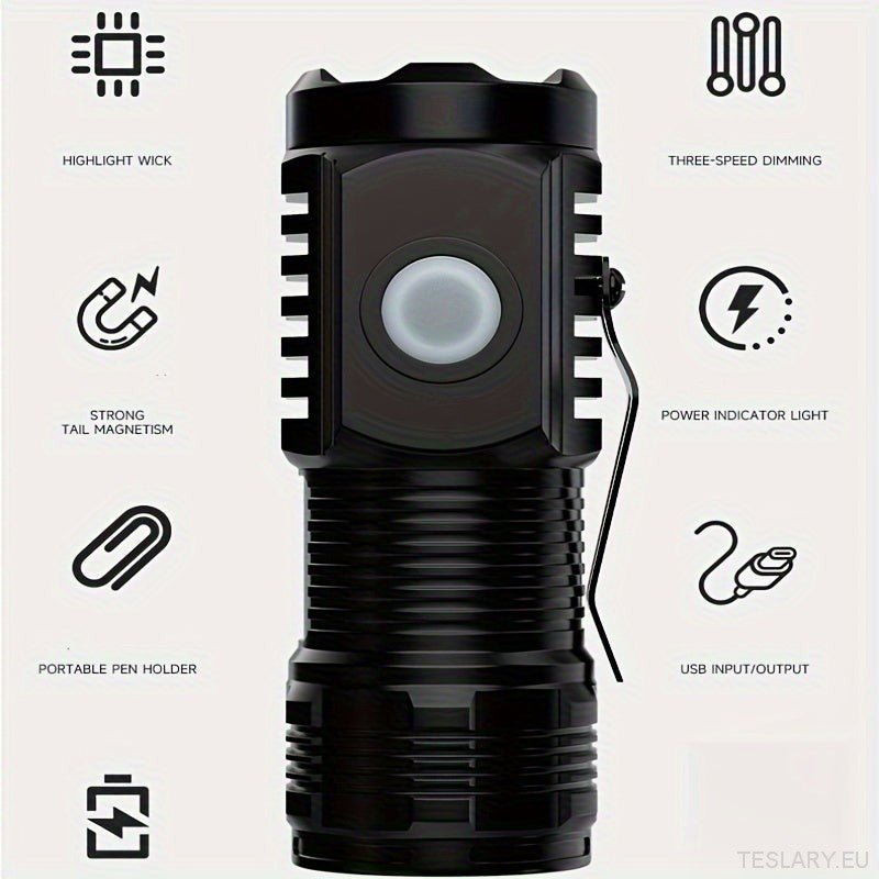 Compact, ultra-bright power that fits right in your pocket or clips onto your backpack. Perfect for stashing in your car for those "oh snap!" moments, keeping in your dorm for late-night study sessions, or throwing in your hiking bag for those unexpected, "wait, where did the sun go?" adventures. This flashlight is seriously a game-changer. The High Power LED kicks out some major lumens, so you can see everything, even when it's dark AF. Plus, it's USB rechargeable, so ditch those annoying batteries and just plug it in! The sleek design is low-key fire, and the durable build means it can handle whatever you throw at it (within reason, obvi). This isn't just a flashlight; it's a lifestyle upgrade.