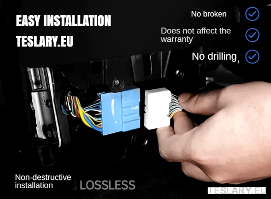 Fitting of this unit is straight forward and requires you to remove the bottom rear panel below the air vents and then the airvent itself. The screen takes the place of the removed airvent and then you simply connect the screen to the Tesla Port. Fitting from start to finish takes 10 to 15 minutes and is very straight forward with no drilling or any changes which would interfere with your Tesla Warranty. The connector simply clips in between the original connectors under the screen and all wiring is hidden behind the screen and lower plastic panel. If you need any help of assistance with the installation we are here to help. The Unit itself comes with a ONE YEAR WARRANTY which is provided by ourselves here in the EU from our facility in Ireland which gives you 100% peach of mind in the unlikely event of an issue with this screen.