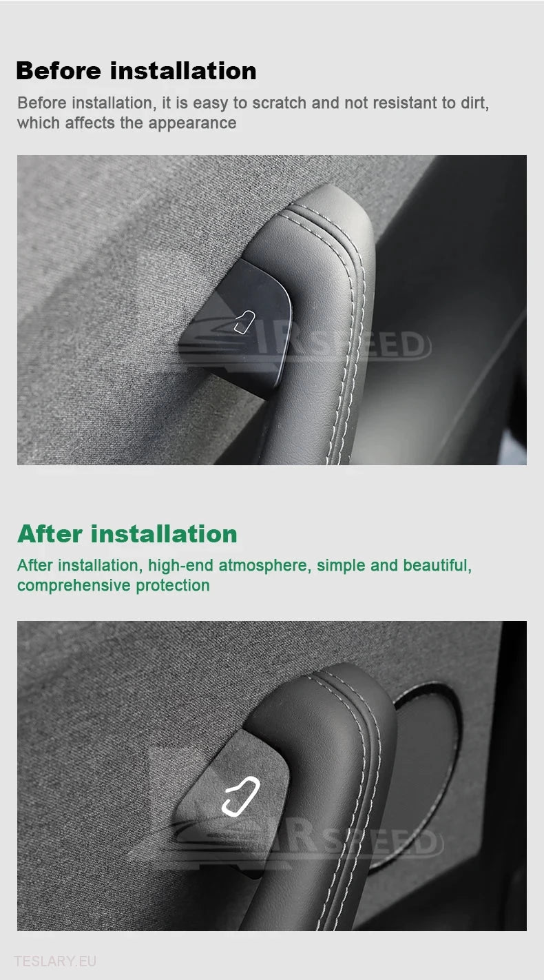 4. The Tesla Model 3 Highland Italian Alcantara suede button covers are expertly crafted to provide precise protection and seamless integration with your vehicle’s interior. Utilizing a 1:1 data model based on the original car specifications, these covers ensure an exact fit with no discrepancies, perfectly matching your Tesla’s equipment. They effectively prevent issues such as moisture infiltration and wear on sensitive auto parts, extending the lifespan of your buttons and controls. Combining advanced design accuracy with premium materials, these covers offer both functional protection and an elegant upgrade, maintaining the integrity and style of your Tesla Model 3 Highland and Model Y Juniper interiors.