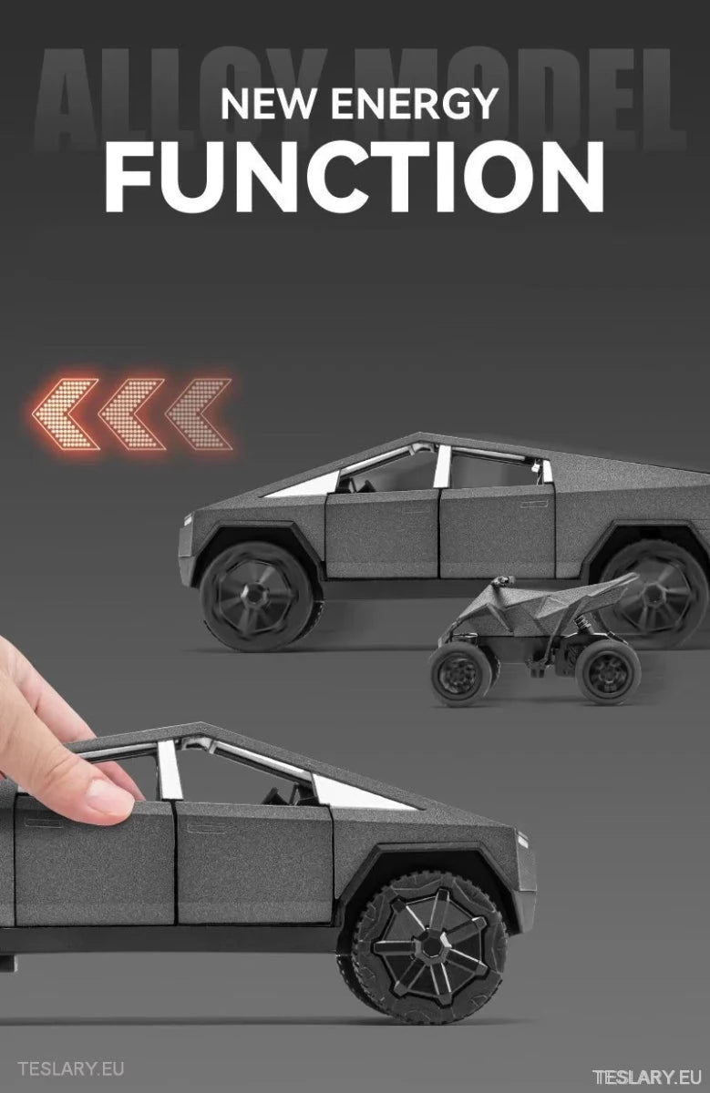 - Manufactured to the highest standards, the model features an alloy body that replicates the Cybertruck's iconic angular silhouette with precision