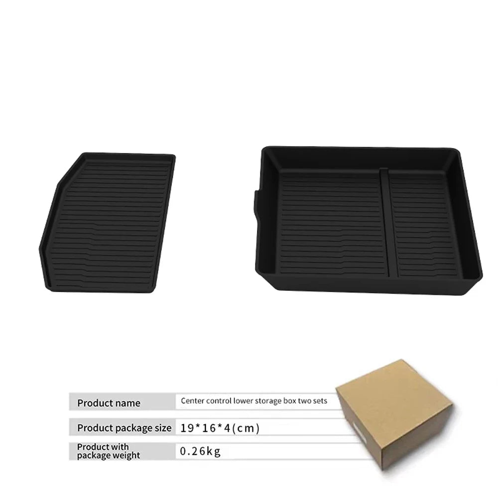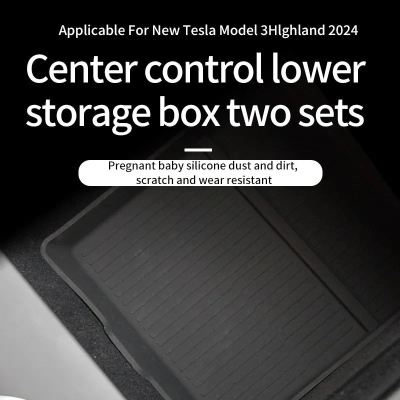 Upgrade your car game with the Tesla Model 3 Highland Center Console Silicone Lower Storage Dual Set. Keep your items organized, easily accessible, and stylishly displayed. Designed for functionality and convenience, this storage set adds a touch of effortless cool to your ride. Say goodbye to fumbling and chaos, and hello to a whole new level of comfort and sophistication.