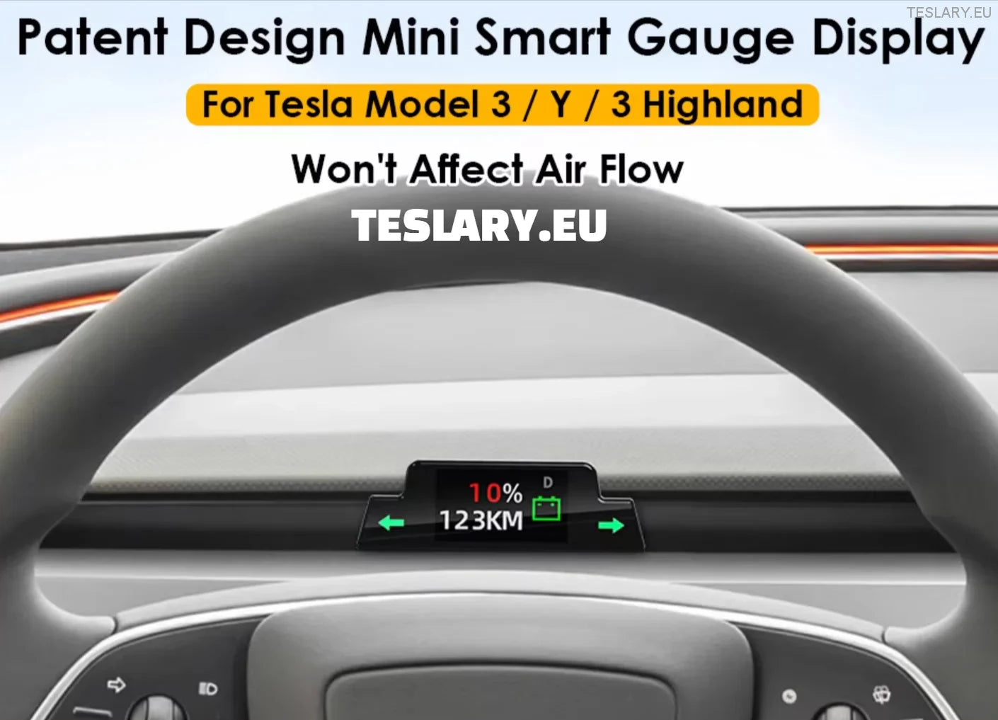 Air Vent Embedded Mini HUD: Special designed for Tesla Model 3 & Y & Model 3 Highland. Suitable for both LHD and RHD. Real-time display car information: Speed, gear, battery level, distance range, turning lights. Small size design , can be perfectly installed embodded in air vent and won't cause any air block. Smart & Hidden.