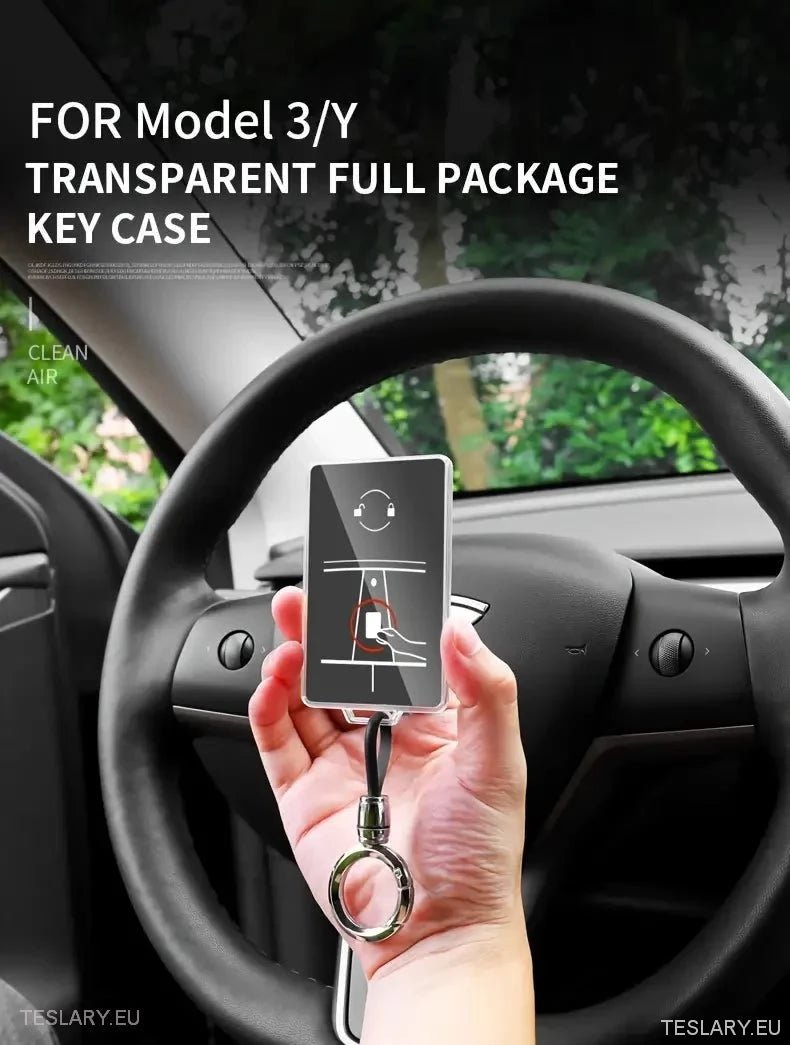The Tesla Protective Key Cover with Keyring is designed to safeguard your Tesla RFID plastic keys with a clear, durable shell that resists scratches, dust, and daily wear. Its transparent material preserves the original look of your key while providing robust protection. Engineered for a precise fit, the cover ensures uninterrupted access to all buttons and sensors, maintaining seamless operation. The included keyring enhances portability and convenience, allowing you to attach your key securely to belts, bags, or keychains. Combining functionality with minimalist design, this cover is an essential accessory for Tesla owners seeking to protect their investment without compromising style or usability.
